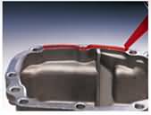 圖1: 渣漿泵泵腔在高速液體中的砂粒的沖刷作用下,磨損嚴重,圖為打磨泵體磨損面后,用RJ系列特種耐磨材料進行修復。