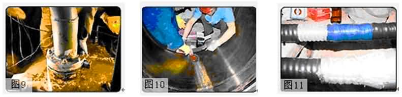 圖5: 汽輪機低壓缸立面泄漏修復:出廠前的低壓缸密封得很好,在長期運行中受冷熱膨脹應力影響使密封墊片產(chǎn)生一定殘余壓縮變形后造成泄漏,選用高溫修補劑及玻璃纖維加強帶可完全避免泄漏。